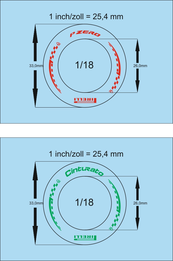 Reifenbeschriftungen 26-1 Pirelli Formel 1 1/18 Naßschiebebild Decal 136x93mm