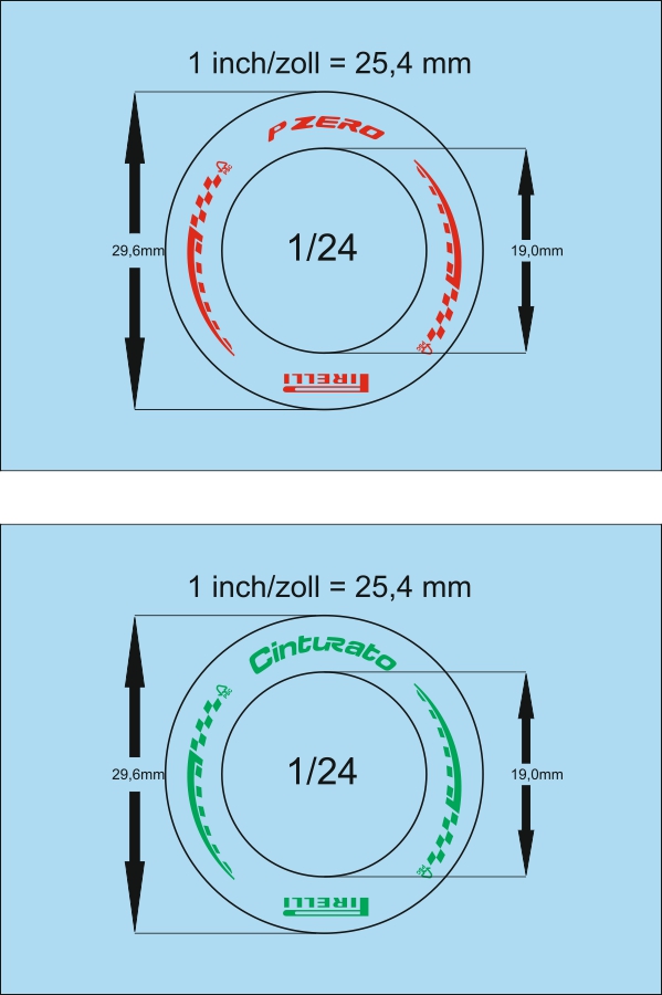 - Reifenbeschriftungen 20 Pirelli Formel 1 1/24 Naßschiebebild Decal 115x60mm