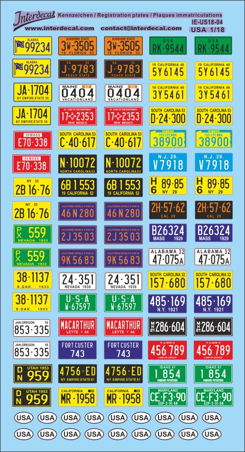 Kennzeichen USA 04 1/18 Naßschiebebild Decal 171x94mm INTERDECAL