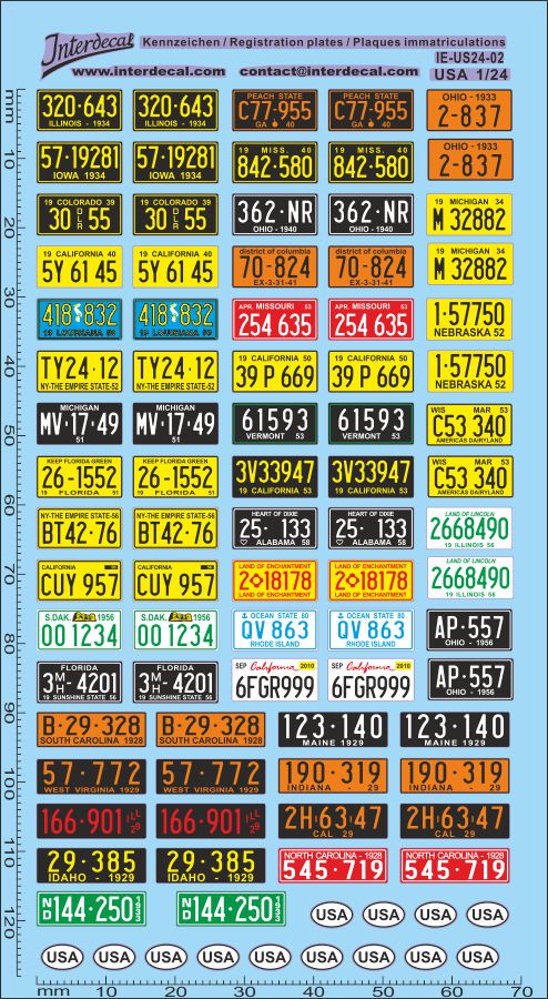 - Kennzeichen USA 04 1/24 Naßschiebebild Decal 129x70mm INTERDECAL