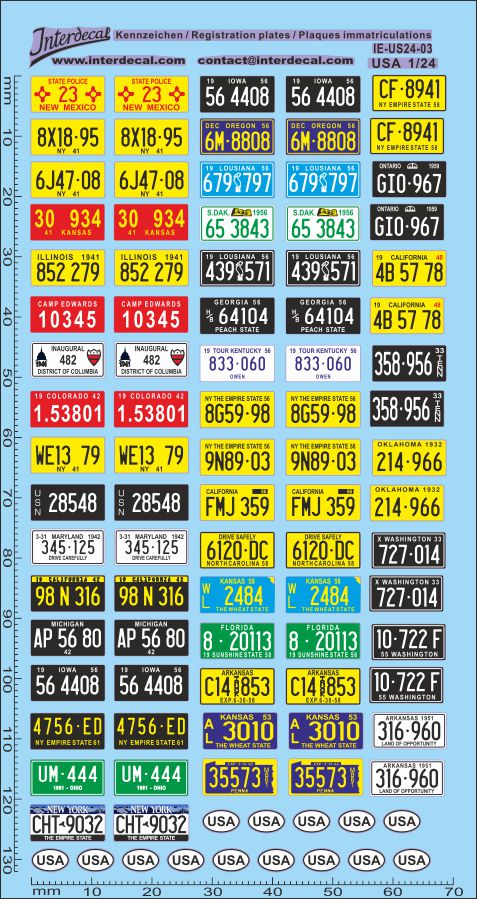 Kennzeichen USA 03 1/24 Naßschiebebild Decal 132x69mm INTERDECAL