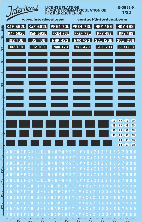 Kennzeichen GB 01 1/32 Naßschiebebild Decal schwarz-weiss 158x108mm INTERDECAL
