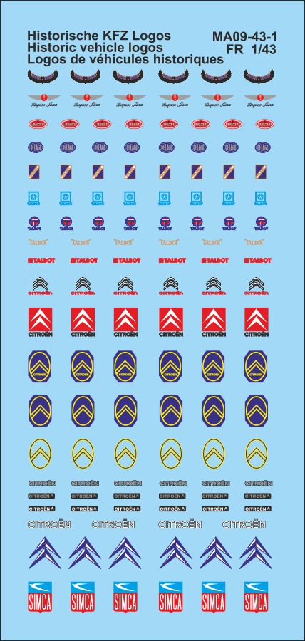 Logo 9 Historische KFZ Logos FR 1/43 Naßschiebebild Decal 101x45mm INTERDECAL