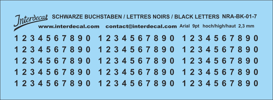 Numbers Arial 07 9pt 2,3mm high Waterslidedecals black 93x19mm INTERDECAL