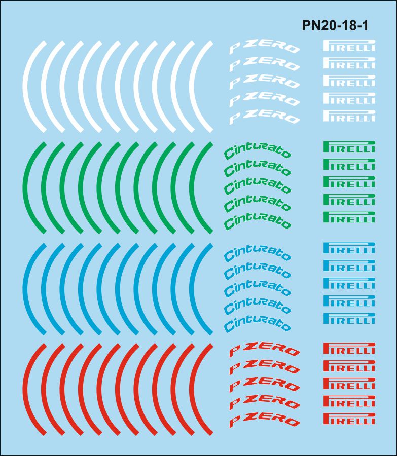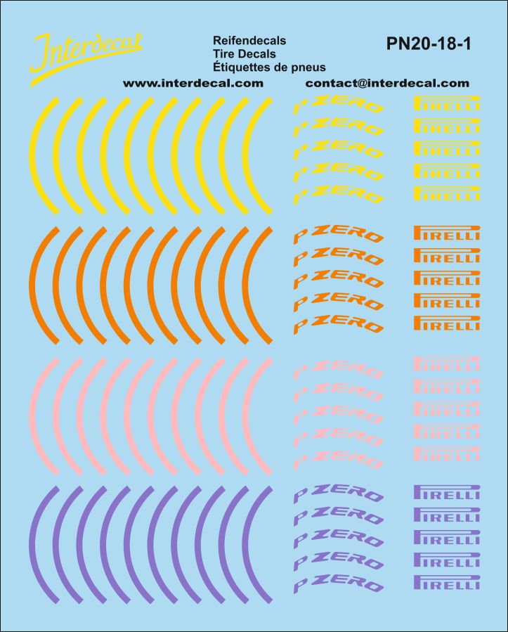 Étiquettes de pneus 20-1 Pirelli Formel 1 1/18 Décalcomanies 160x80mm