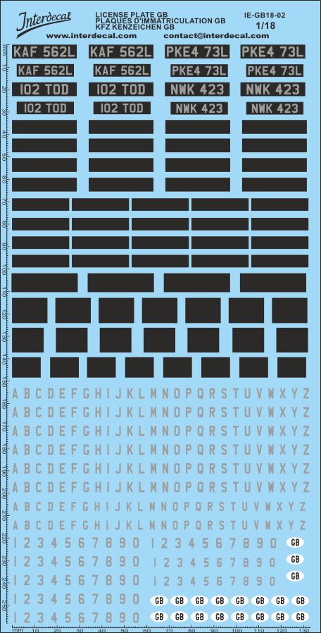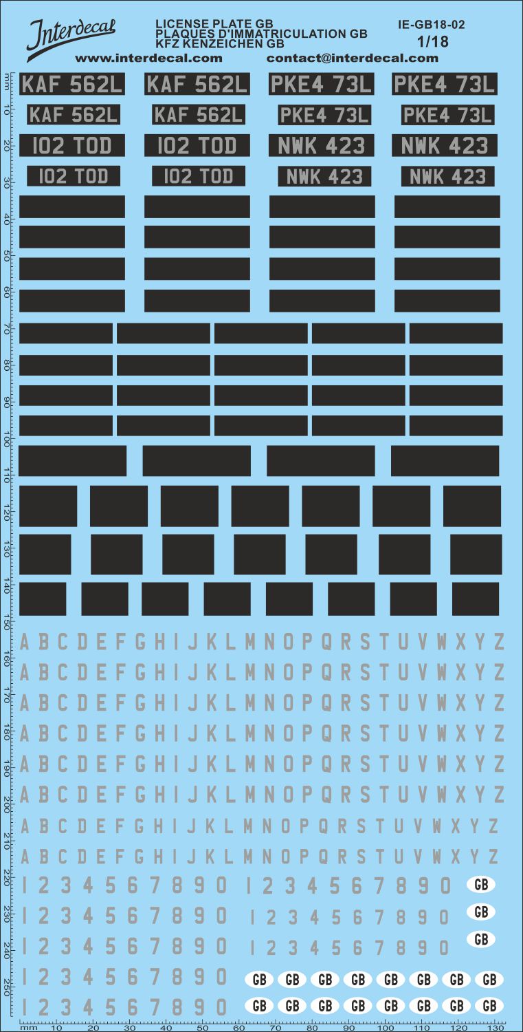 Plaques immatriculations GB 02 1/18 Décalcomanies noir-blanc-argent 258x132mm